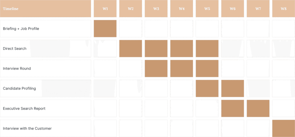 I would also be very pleased to use my expertise to find the perfect employee for your vacancy. To ensure a quick and effective onboarding, I’m happy to accompany the candidate over a longer period in your company. Let’s talk about your requirements and strategic planning in our initial consultation and see together how we can overcome your challenges.
