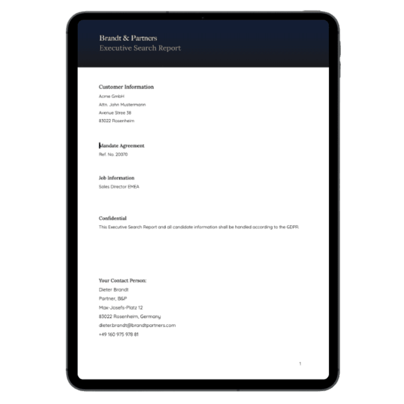 The B&P Executive Search Report blends scientific precision with human insight. Using ProfilesXT, we gain data-driven visibility into a candidate’s competencies, potential, and leadership style. This objective foundation helps us identify key strengths and development areas early in the process.